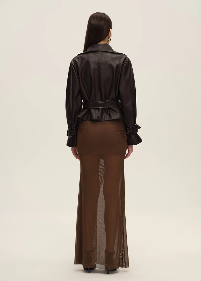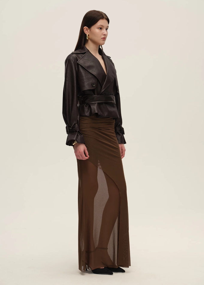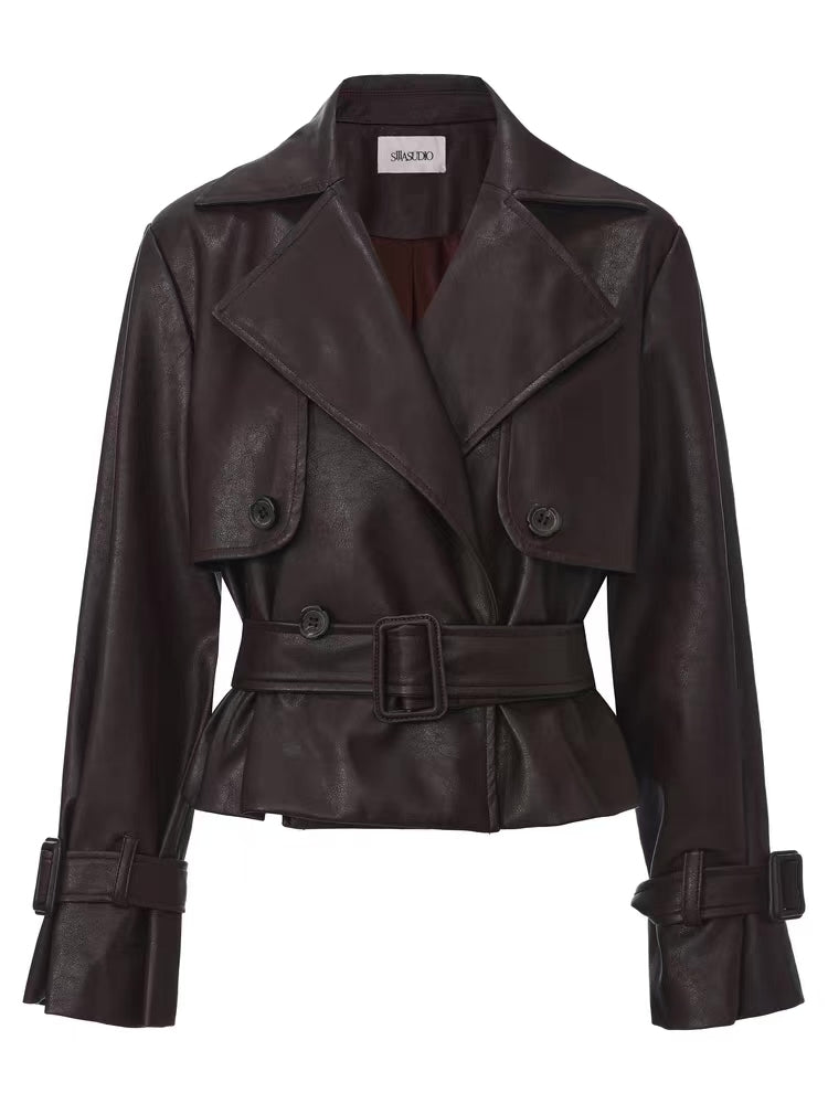 Dark Brown Short Vegan Leather Trench